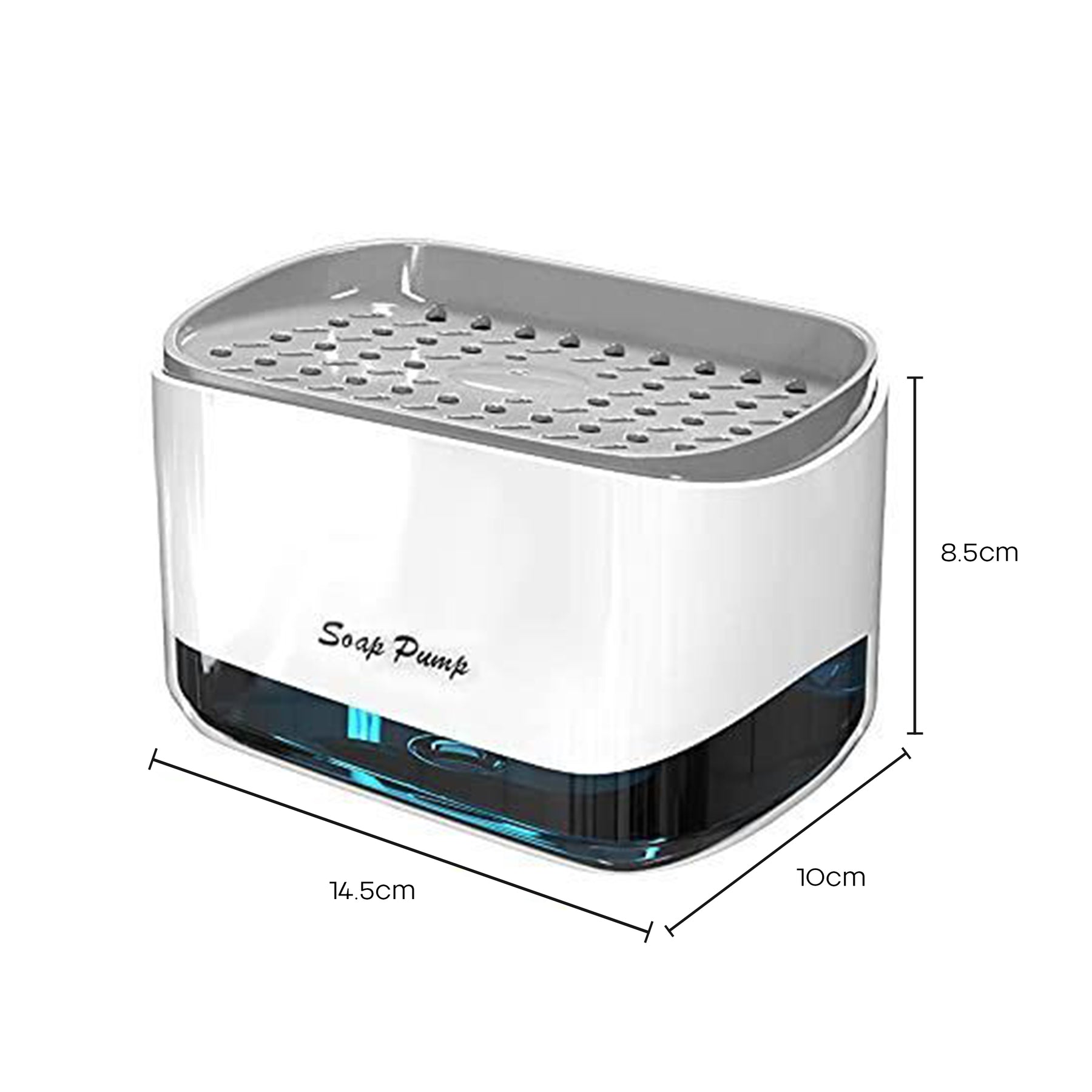 A soap sponge dispenser that combines soap storage and a sponge holder into one compact unit. Just press down to dispense the right amount of dishwashing liquid – saving time and reducing waste.